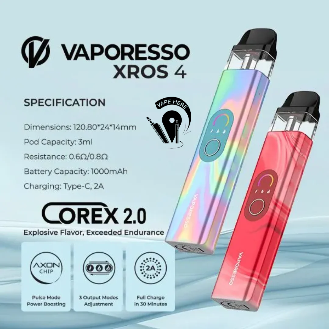 The Vaporesso XROS 4 is a next-generation pod vape designed for smooth performance, powerful battery life, and customizable airflow. Now available in Dubai & across UAE, the XROS 4 combines sleek aluminum design with advanced AXON chipset technology, delivering a premium vaping experience for both beginners and experienced users.